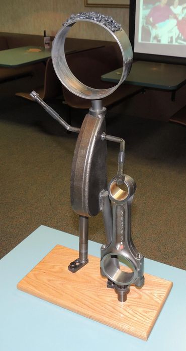This is little Richard and he was a retirement gift for a co-worker. He is constructed from engine parts that my co-worker was involved during his career.